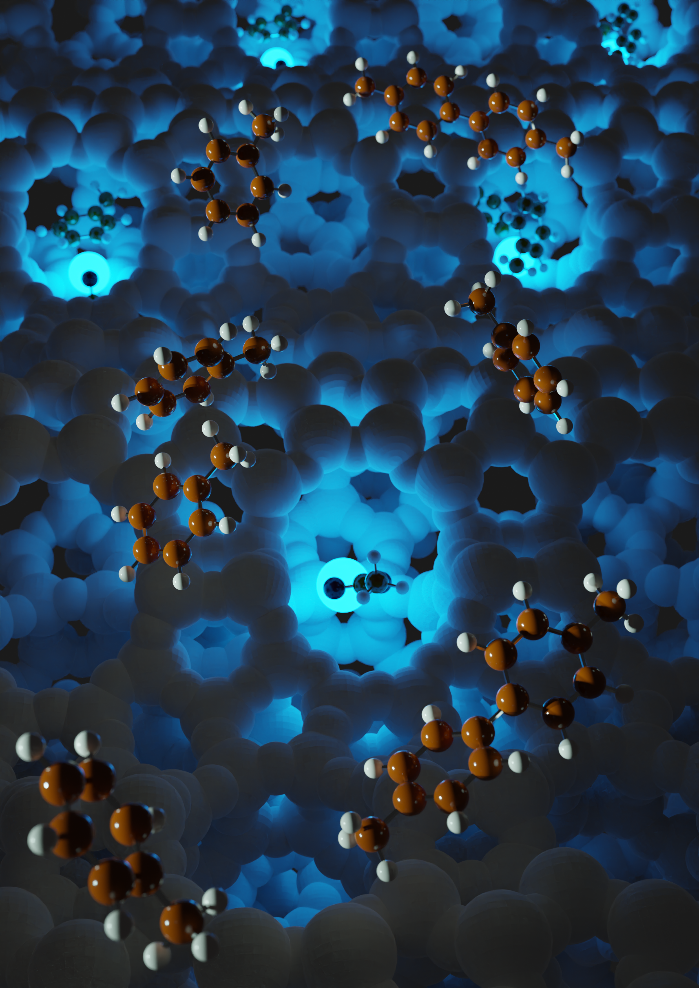 An international collaborative study led by the Centre for Membrane separations, Adsorption, Catalysis and Spectroscopy for Sustainable Solutions (cMACS) at KU Leuven, in collaboration with the Center for Molecular Modeling (CMM) at Ghent University, the Smart Materials Research Institute at the Southern Federal University (Russia) and the National Institute of Chemistry (Slovenia) has shown that cationic palladium hosted in zeolites can catalyse C-H functionalization reactions with unprecedented shape-selectivity. The findings introduce a novel concept to the field of catalysis, in which exceptional control of selectivity can be achieved in transition metal (TM) catalysed arene C-H activation through the spatial confinement of TM sites in zeolite pores.