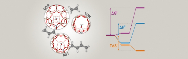 The methylation of ethene, propene, and trans-2-butene on zeolites H-ZSM-58 (DDR), H-ZSM-22 (TON), and H-ZSM-5 (MFI) is studied to elucidate the particular influence of topology on the kinetics of zeolite-catalyzed reactions. H-ZSM-58 and H-ZSM-22 are found to display overall lower methylation rates compared to H-ZSM-5 and also different trends in methylation rates with increasing alkene size. These variations may be rationalized based on a decomposition of the free-energy barriers into enthalpic and entropic contributions, which reveals that the lower methylation rates on H-ZSM-58 and H-ZSM-22 have virtually opposite reasons. On H-ZSM-58, the lower methylation rates are caused by higher enthalpy barriers, owing to inefficient stabilization of the reaction intermediates in the large cage-like pores. On the other hand, on H-ZSM-22, the methylation rates mostly suffer from higher entropy barriers, because excessive entropy losses are incurred inside the narrow-channel structure. These results show that the kinetics of crucial elementary steps hinge on the balance between proper stabilization of the reaction intermediates inside the zeolite pores and the resulting entropy losses. These fundamental insights into their inner workings are indispensable for ultimately selecting or designing better zeolite catalysts.