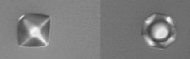 This work has an experimental and a computational aspect. It depends on the preference of the candidate whether emphasis will be on the experimental part, the computational part, or on the dialogue between both. The goal of the experimental part is to improve the visualization of the form of the voids. Nowadays the largest voids can be observed as pits on the surface of a polished wafer (see fig.) from which an estimate of their form is not so straightforward. These surface pits can be enlarged using novel preferential etchants allowing a systematic study via optical microscopy. In the computational part, surface energies of several high-index surfaces of germanium will be calculated. These energies are used in a so-called Wulff-construction, in order to obtain the thermodynamical equilibrium shape of a nano-particle (fig) or – in this case – a void. If temperature-dependent surface energies are computed, then the shape of the void can even be predicted as a function of temperature.