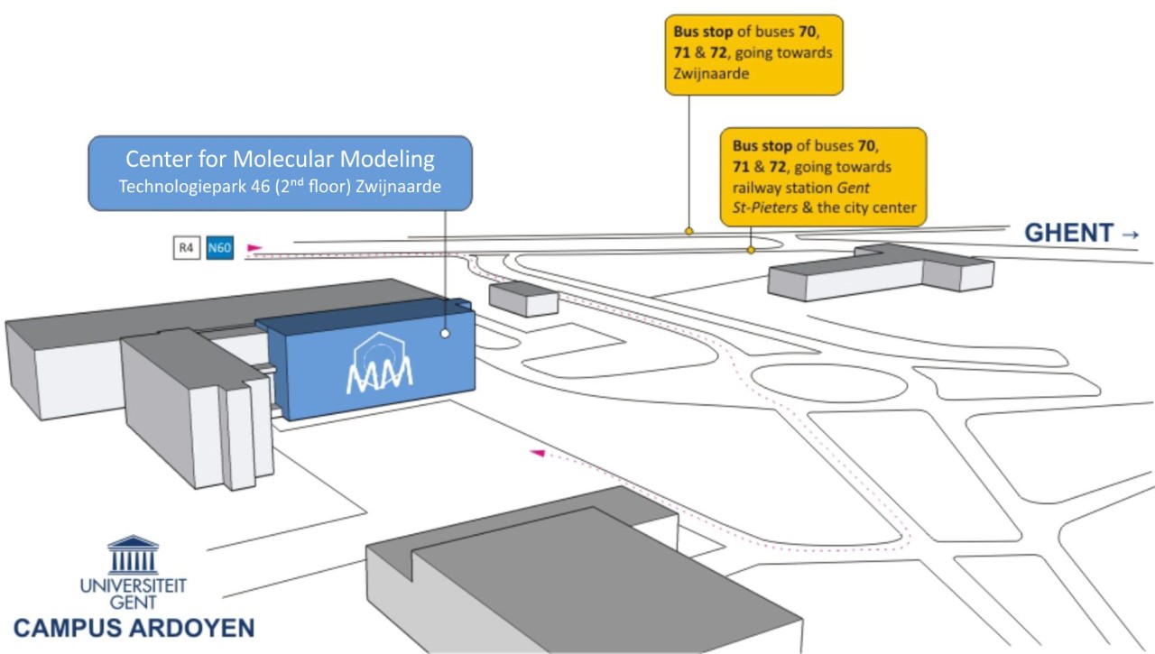 If you are coming from Brussels: Take R20 to A10 in Sint-Agatha-Berchem. Take E40 to Oudenaardse Steenweg/N60 in Gent. Take the N60 exit from R4. Continue on N60 and merge onto Oudenaardse Steenweg/N60. Turn left at Grotesteenweg-Zuid. Continue onto Grotesteenweg-Noord/N60. Turn right onto Technologiepark-Zwijnaarde. At the roundabout, take the 1st exit and drive straight on to arrive at the parking lot of building 46. The CMM is located on the second floor. If you are coming from Antwerp: Get on E34 from Nationalestraat and N113. Take E17 to Oudenaardse Steenweg/N60 in Gent. Take the N60 exit from R4. Continue on N60 and merge onto Oudenaardse Steenweg/N60. Turn left at Grotesteenweg-Zuid. Continue onto Grotesteenweg-Noord/N60. Turn right onto Technologiepark-Zwijnaarde. At the roundabout, take the 1st exit and drive straight on to arrive at the parking lot of building 46. The CMM is located on the second floor.